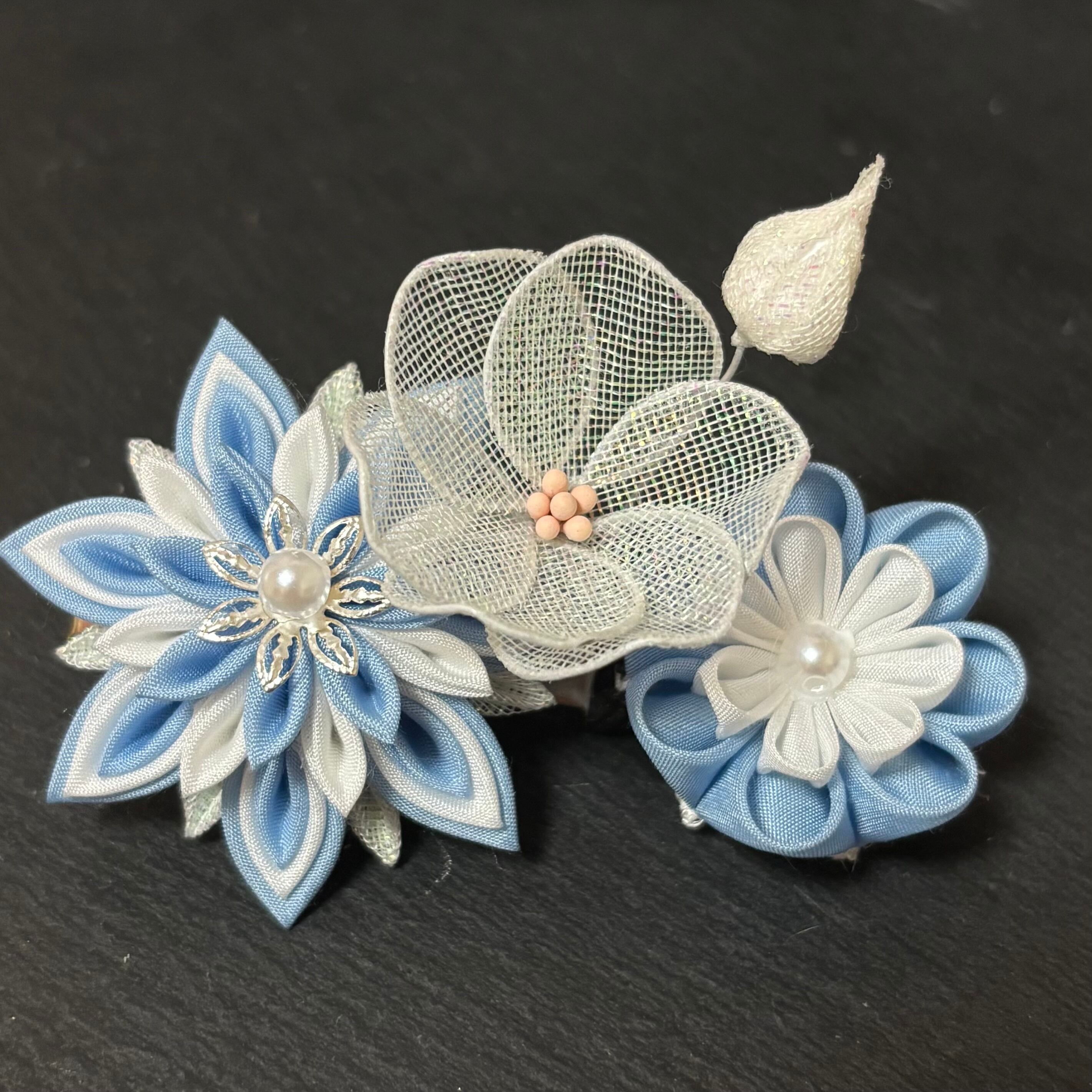 『つまみ細工』を作るだけで髪飾りができちゃいます。頑張れば1日で出来ちゃうので、時間が無い人も安心です